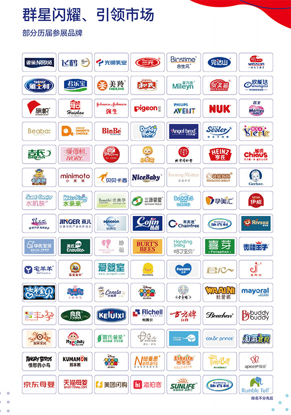 支持單位:中國優(yōu)生優(yōu)育協(xié)會、中華醫(yī)學會、中國貿促會商業(yè)行業(yè)分會、全國婦聯(lián)辦公廳、中國婦女兒童活動中心、中國關工委健體中心學雷鋒聯(lián)盟、全國衛(wèi)生產業(yè)企業(yè)管理協(xié)會兒童健康產業(yè)分會、中國國際展覽中心集團、《中國會展》雜志社、廣東省孕嬰童用品協(xié)會、云南省孕嬰童用品協(xié)會、河南省孕嬰童用品行業(yè)協(xié)會、山東省孕嬰童用品商會、海南省孕嬰童行業(yè)協(xié)會、貴州省兒童用品商會、廣西玩具和嬰童用品協(xié)會